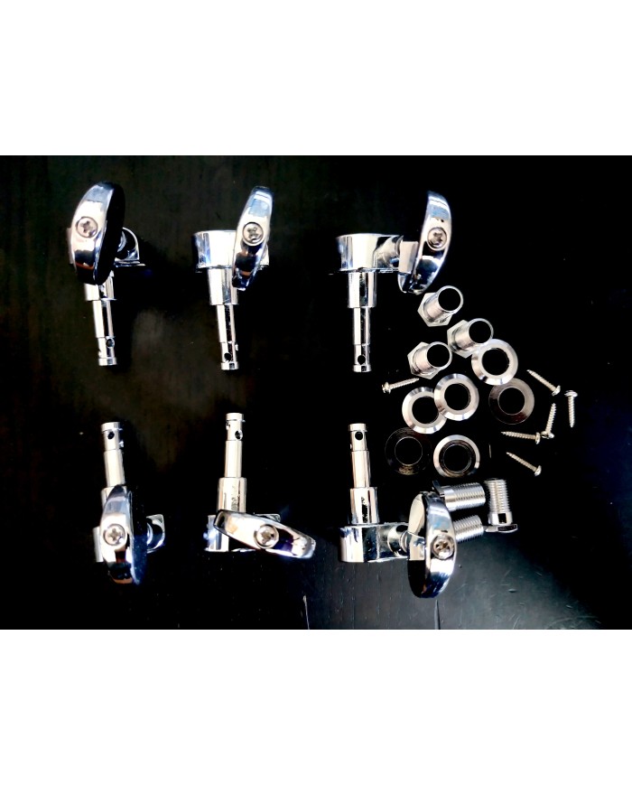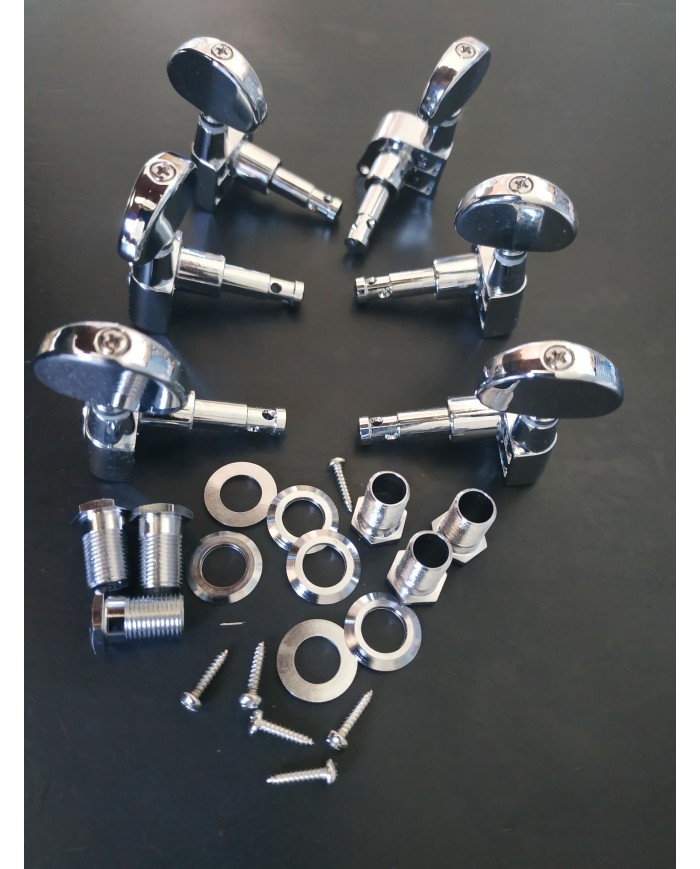 6 Wilkinson Chrome machine head with flat sided big button, 3 left side + 3 right side