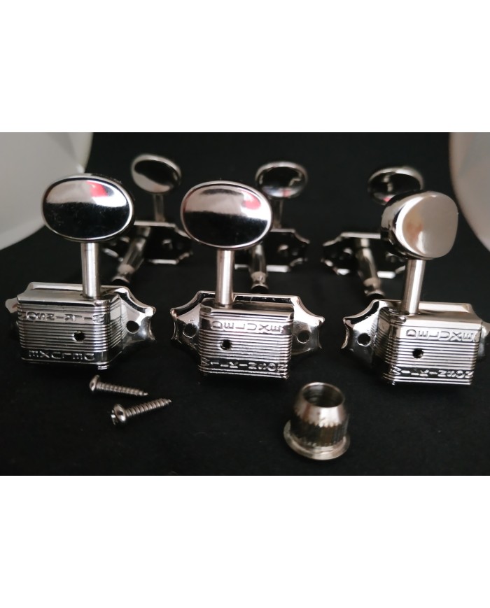 6 Nickel Wilkinson, kluson style 3+3 Machine heads, rond metal button, ratio 1:16