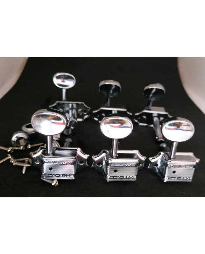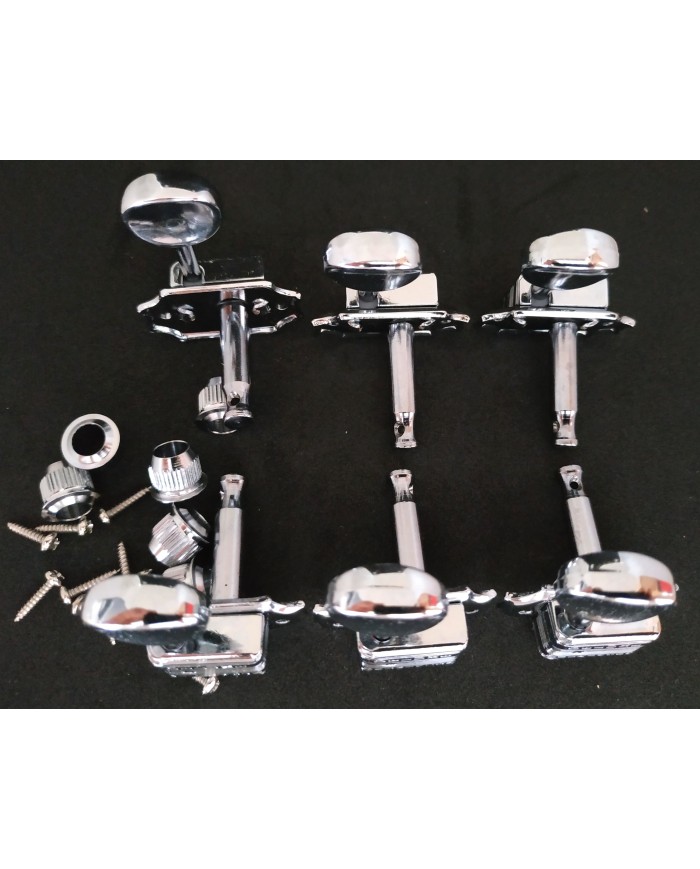 6 Chrome Wilkinson, kluson style 3+3 Machine heads, rond metal button, ratio 1:16