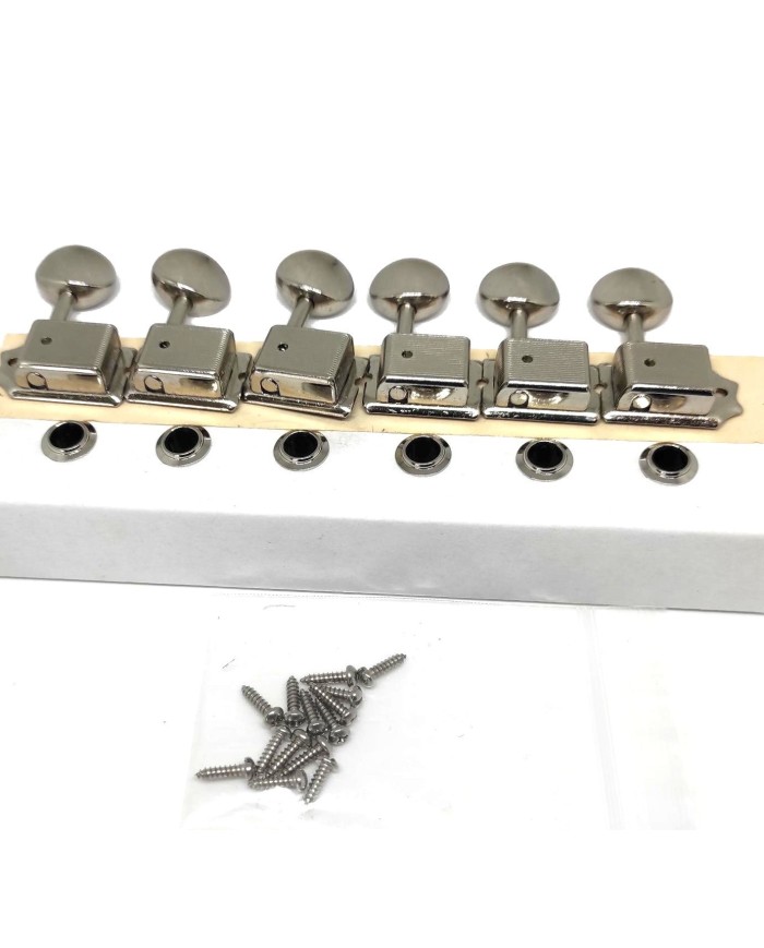 Package includes six plated steel tuning machines, bushings, and mounting screws.