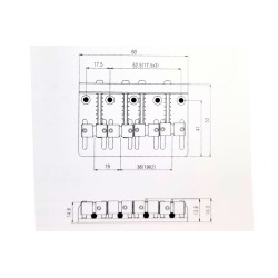 4-string bass bridge, gold finish, 80x53 mm, elegant and efficient rectangular format