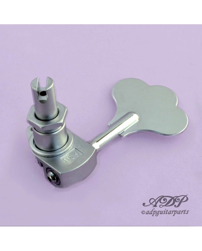 HIPSHOT ULTRALIGHT LMHB6C Licensed BASS TUNER 3/8" Clover Key Satin Chrome Finish heavy bass tuners add unnecessary weight to your headstock, making your instrument unbalanced. Don't carry the weight of the world on your shoulders! Our Licensed Ultralite™ tuners are designed to eliminate neck dive with precision and longevity at a great price! The Licensed Ultralite™ Features: 20:1 Gear ratio; Compact footprint installs on even the smallest headstocks; Full sized clover leaf key keeps the classic look of your headstock. The 3/8" diameter version fits basses with a headstock hole size of 14mm (9/16"). Licensed Ultralites™ ARE NOT reversible.