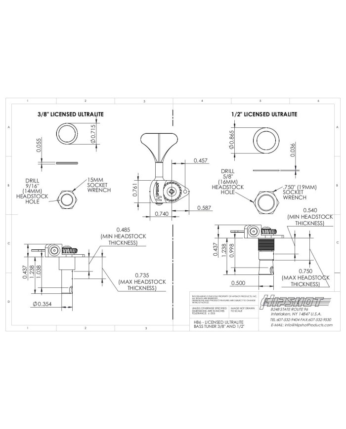 - The 3/8" diameter version fits basses with a headstock hole size of 14mm (9/16")