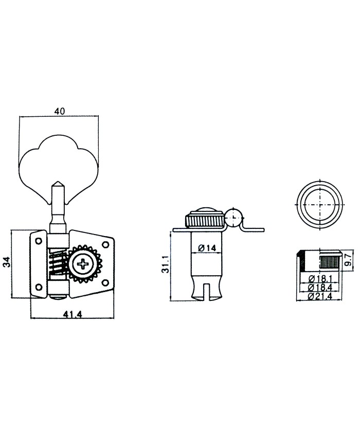 4 Black reversible Bass Tuners, 4 right, 14mm