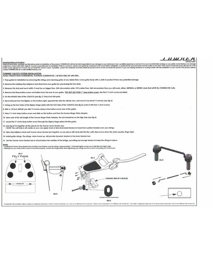 TOWNER® DTB Adapter – Drill-free Mounting for Bigsby® B3 (B6 for ES)