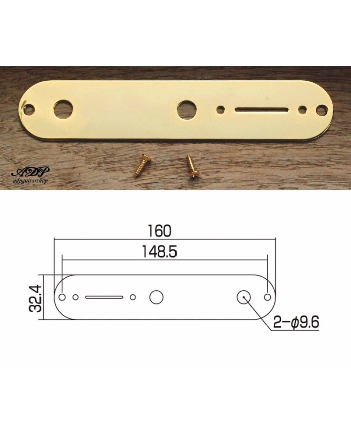 Control Plate, GOLD with 2 screws; pots holes: 3/8"