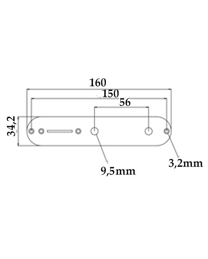 Control Plate, Chrome with 2 screws for metric pots (holes: 9,5mm) 3/8"