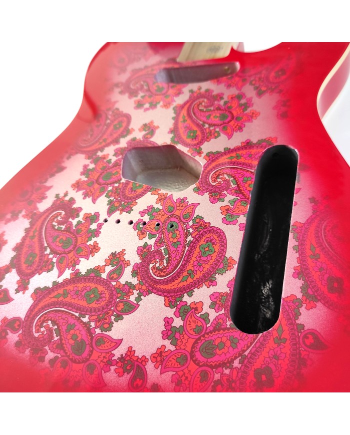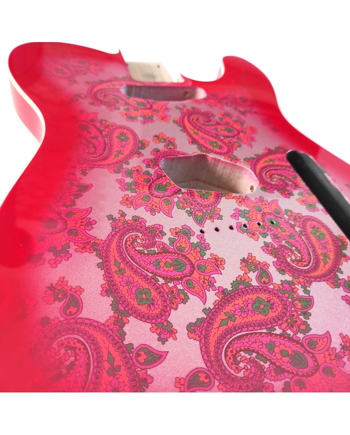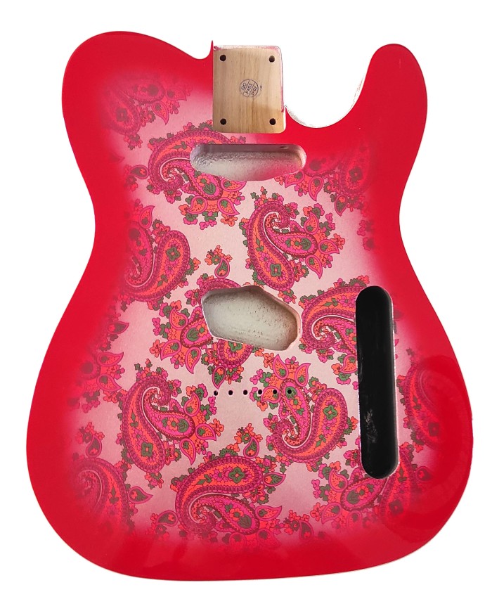 3-piece alder body Telecatser style varnish. Red Paisleyr Finish, Double binding