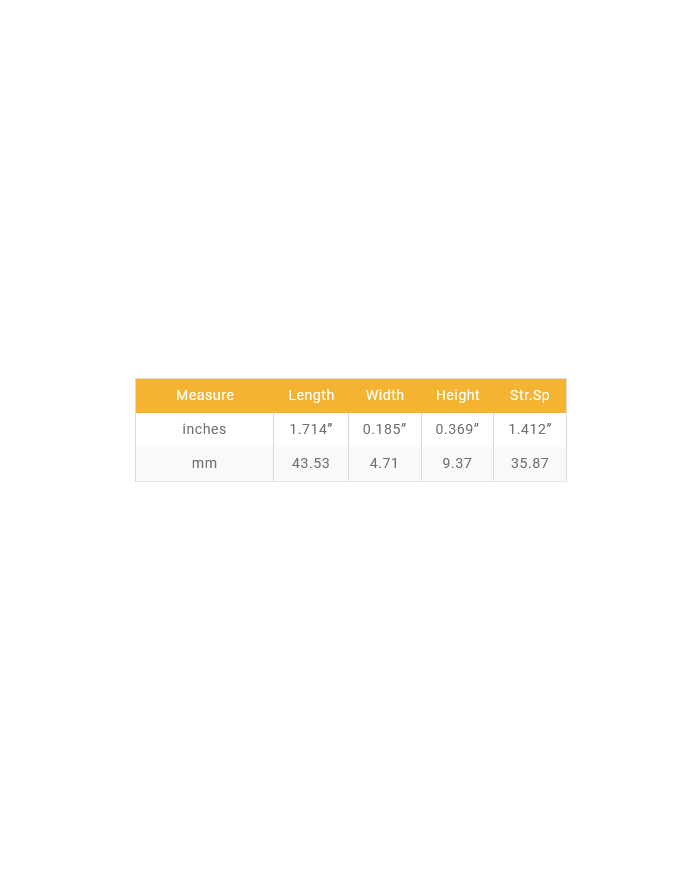 Meas. Thick / Thickness Length / Width Height / Height E to E Appr. In. 3/16 "1 3/4" 3/8 "1 7/16" Inches