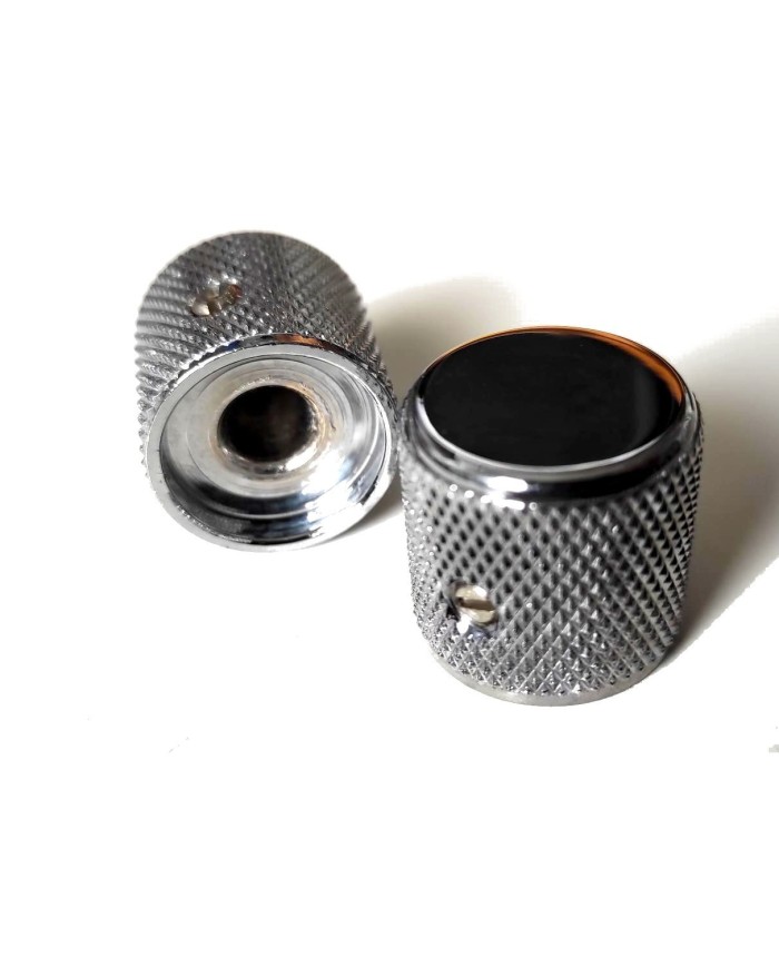 Set of two vintage-accurate chrome-plated aluminum round-top knurled knobs