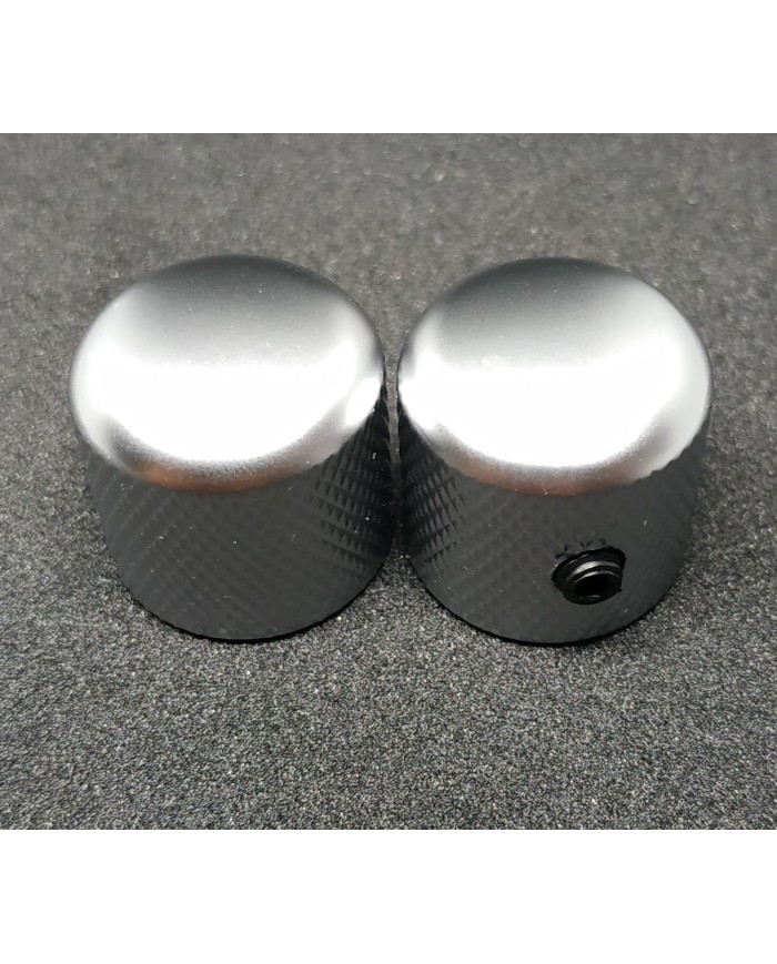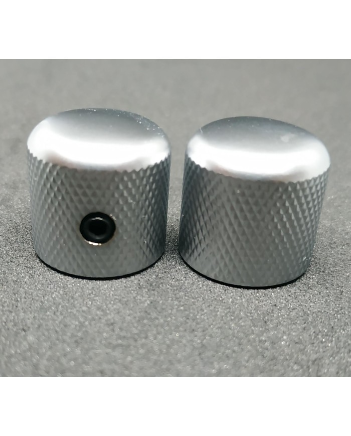 2 Satin Chrome Tele Metal Dome Knobs for 6,35mm (1/4") Pots small Grip
