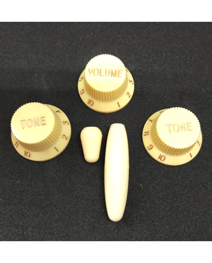 Stratocaster Cream set : 3 control UFO + Tremolo + Switch Metric size Knobs