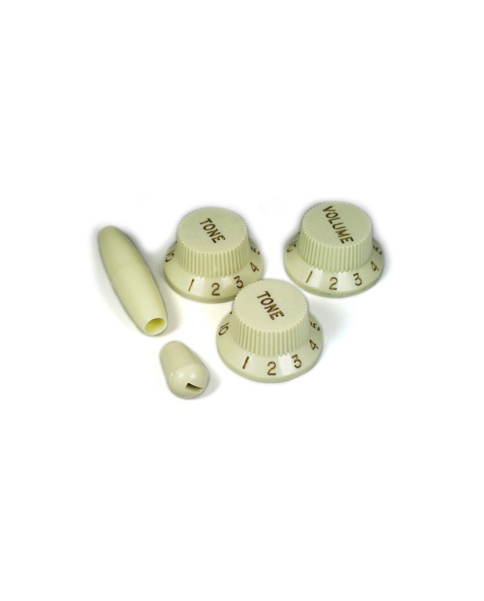 USA (all parts) button set for Stratocaster® color MINT GREEN (off white mint green) Strat Vintage Parchment Knobs Set 1 vol, 2 Tone, 1 switch, 1 Tremolo arm Tip
