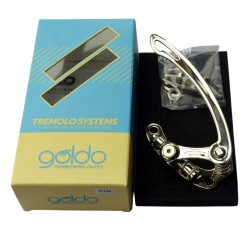 No drilling, no milling, the Göldo tremolo is perfect for adding to your Les Paul or SG guitar. Chrome finish, also available in nickel, gold, and black.
