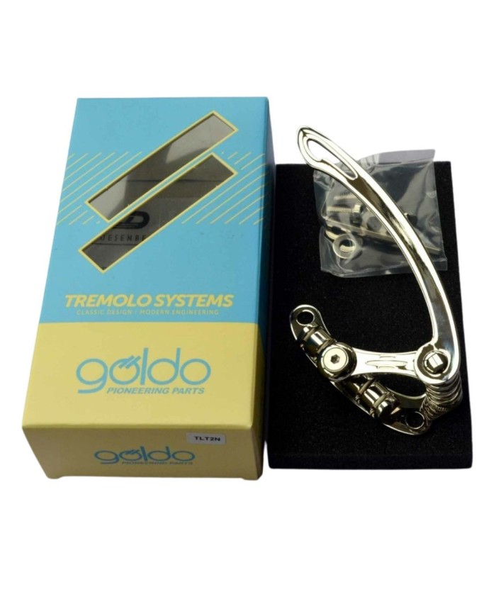 The Göldo Les Trem TLT2N is a vibrato system designed to replace a stop tailpiece on Les Paul, ES, SG type guitars and equivalent models. It allows you to add a smooth, stable, and musical vibrato, without modifying the instrument.