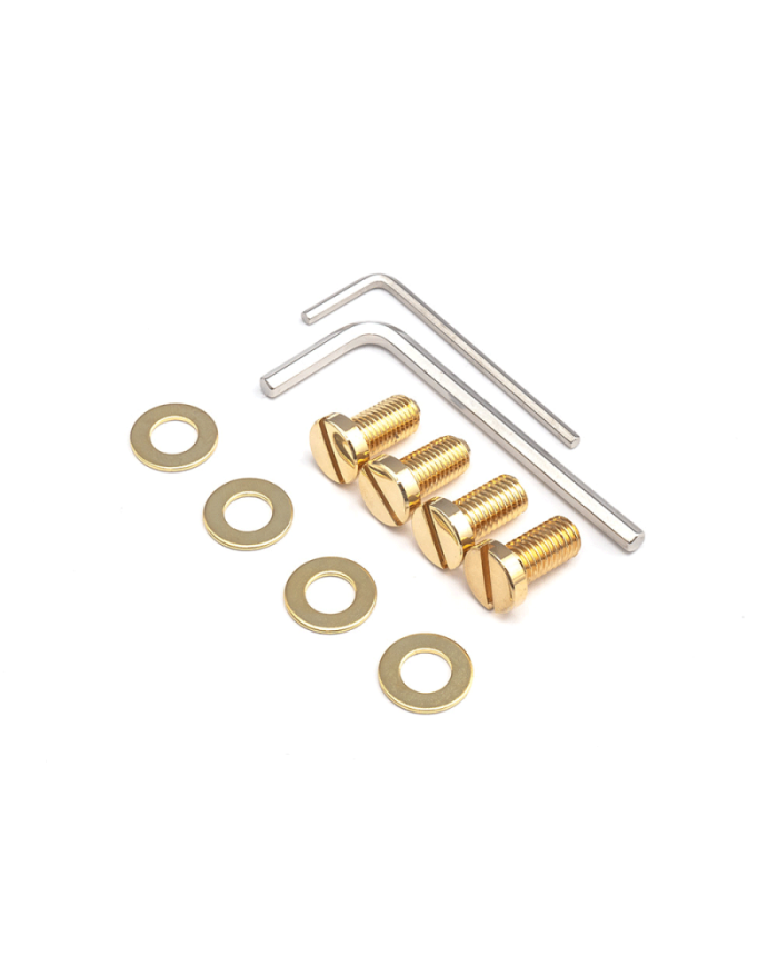 Ships including metric and US mounting screws. Required spacing of stop-tailpiece studs: 81.5mm/3.2" (Standard measure for most stop-tailpieces).