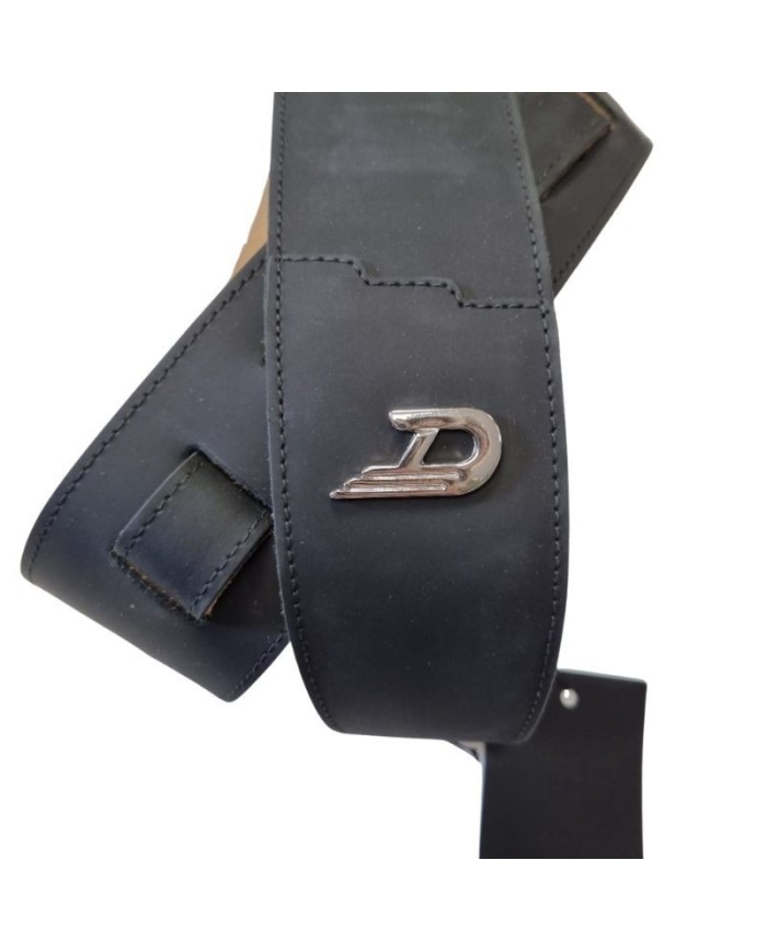 A high-quality leather sling with a riveted metal D logo and a non-slip suede inner surface.