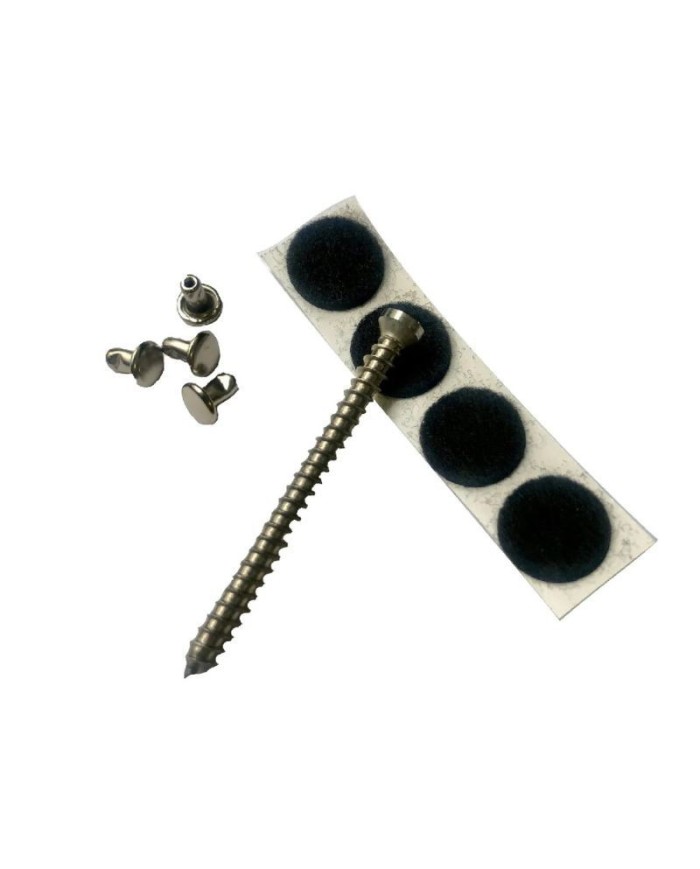 This bag of very useful screws and rivets for Bigsby hinge plates. The 5 cm screw head fits all standard strap lock buttons and strap buttons. The rivets included in the bag are used to enhance the surrounding holes in the hinge plate, avoiding the need to drill additional holes in your guitar.