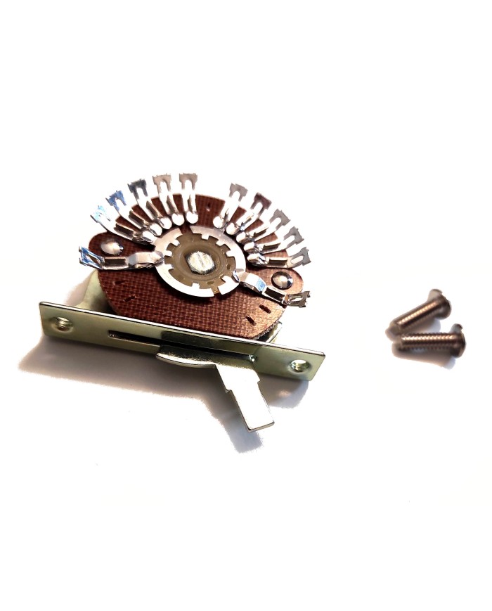 5-Way Switch for Stratocaster. Supplied with 2 chrome screws. 4.15mm screw spacing.