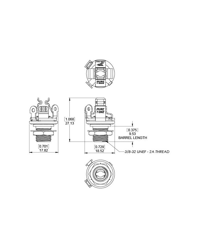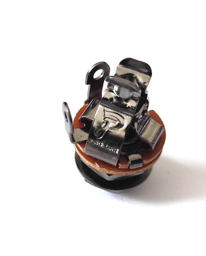 The Pure Tone jack allows for increased current handling at 500 volts for high current applications. Tensioned design locks cable securely in place while the increased metal mass carries more signal.