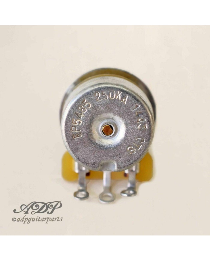 SPLIT SHAFT Audio Taper Mini Pots CTS USA 250KOhm (P-5485) High quality Mini Pot, manufactured by CTS. Audio Taper, 24 spline split shaft, with hardware. The body of this pot measures less than 5/8″ across and requires a cavity depth of just over 1/3″, making it ideal for tight spaces. Required mounting hole diameter 3/8" (9,52mm)