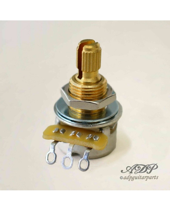 WD® Music Products developed this high-quality potentiometer with CTS® to offer you exceptional performance in electronics for your instrument. These are NOT the same CTS pots that other companies stock and sell. These are developed using ±9% tolerances and a value at 10% over the standard ohms rating (275 kohms for 250). This ensures not only optimum performance, but guarantees your potentiometers will always be at least the value stated.