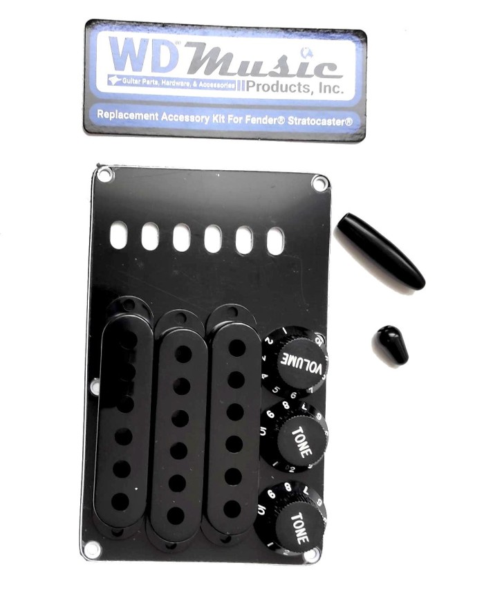 Strat® Accessory Kit : 3 Knobs, 2 Tips, 3 Pickup Cover (single coil), 1 Tremolo backplate
