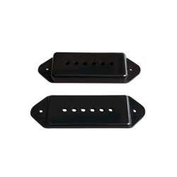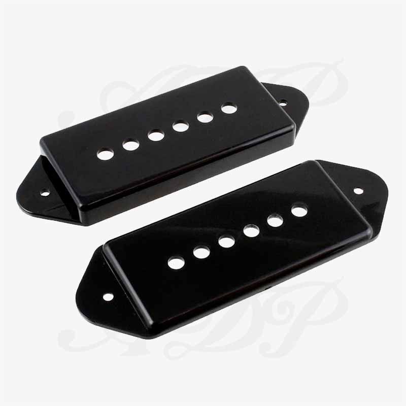 Staggered Black Cover Pickup for P-90® (Gibson® Style Dog Ear Single Coil pickup) Black plastic pickup cover set for P-90®, with ears.