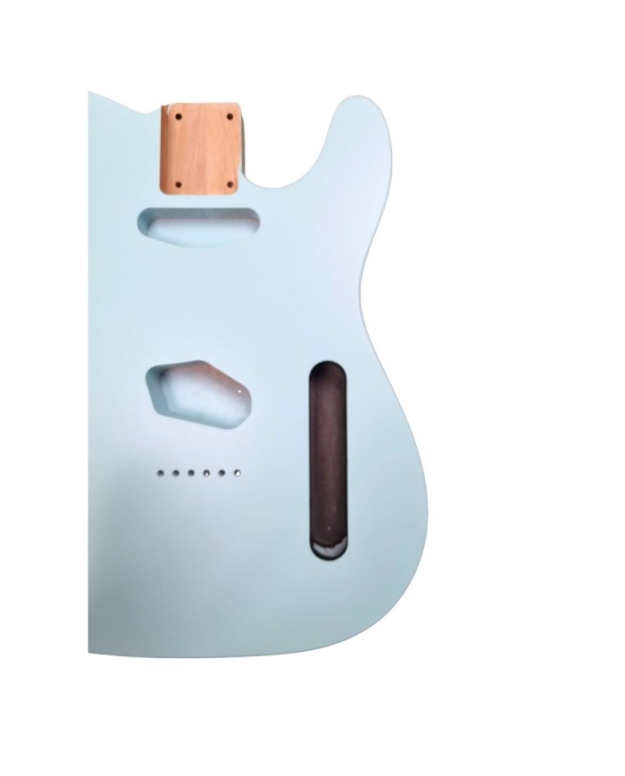 Telecaster type body in Sonic Blue finish and satin nitro varnish. Made from 3-piece alder, this electric guitar body has all the qualities for an amateur or advanced lutherie project. It is compatible with our Telecaster necks and Fender necks. You will also find all the hardware and electronics on our website.