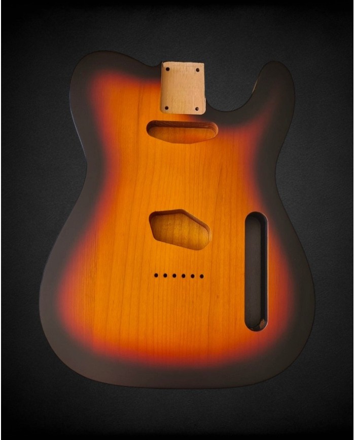 The 3-Tone Sunburst in satin nitro is vintage burst at its most organic. No thick poly coating to bury the wood : nitrocellulose lets the alder breathe, reveals its grain, and ages alongside it. The yellow-orange-black fade is deep, luminous, alive.