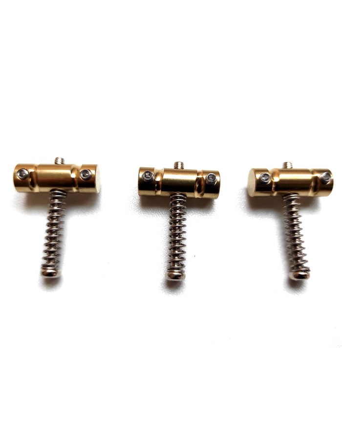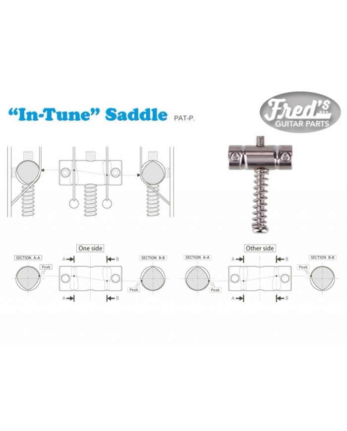 Gotoh In-Tune Compensated Saddles For Tele with Vintage style Bridge (Barel) They look original, but they play in tune! The problem with vintage Tele® saddles is that they weren't designed for accurate intonation. These Gotoh replacements provide precise tuning while keeping the vintage look.Built-in compensation. Unique grooves molded into these saddles move each string's point of contact for more exact intonation than traditional barrel saddles.Gotoh's In-Tune saddles fit any vintage-style Tele bridge. Each saddle is reversible and can be used in any position.Diameter: 0.310" (7.87mm) String Spread: 2-1/8" (53.98mm) Set of 3 includes steel intonation screws and springs.