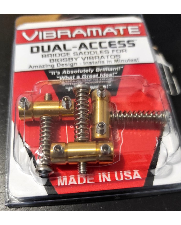 Designed to work with V5-TE mounting Kits on Tele® equiped with Bigsby® Vibratos. Brass mounting screws and compression springs adjustable on both ends for easy acces to adjust intonation. Screw is M3. also available in Solid Steel