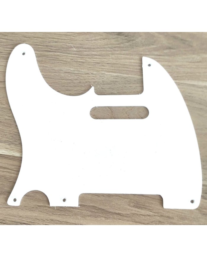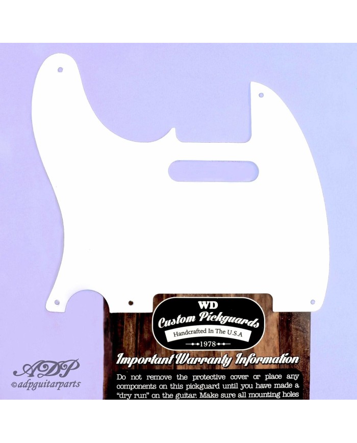Lefty Pickguard for Telecaster® Vintage 1 ply 5 holes. For Telecaster 1954-Present USA. Solid white PVC plastic material with a clear protective removable masked top. Thickness .060".