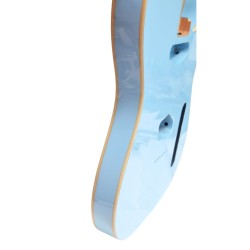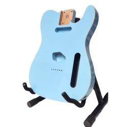 Three-piece alder Telecaster body, finished in Sonic Blue, featuring elegant double binding. Compatible with standard Telecaster configurations, it offers excellent resonance and enhanced stability. Pre-drilled for electronics and neck, this body provides a solid foundation for high-end custom guitar builds.
