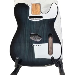 Corps Telecaster aulne 3 pièces, finition noir vernie poly, double binding et routage 2 humbuckers. Look vintage et sonorité puissante.