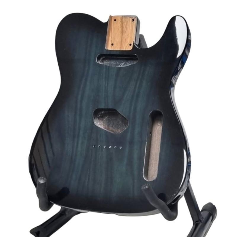 Corps style Telecaster en frêne, 3 pièces, finition Metallic Blue et vernis poly gloss. Micro SS.