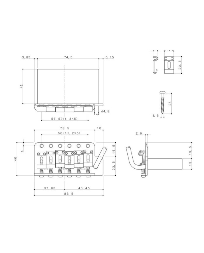 Tremolo Bridge Vintage style LEFTY Vintage/USA spec 2-3/16" string spacing & outside holes 2-3/16" on center (#56 mm)