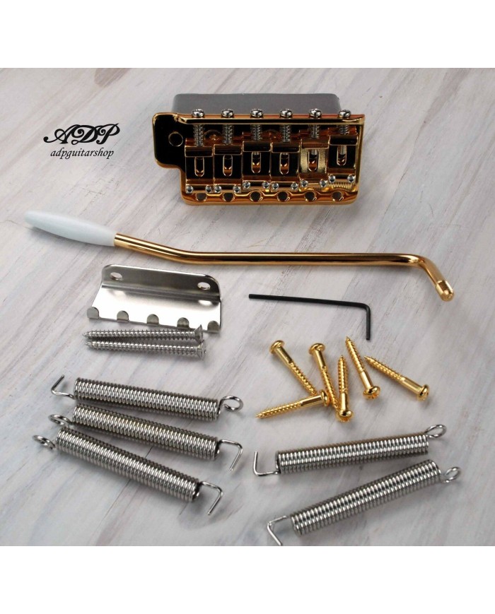 Gotoh GE101T-Gold Tremolo Bridge Vintage Stratocaster® style 6 Steel (Sheet Metal) saddles, 6 mounting holes, Gold Finish
