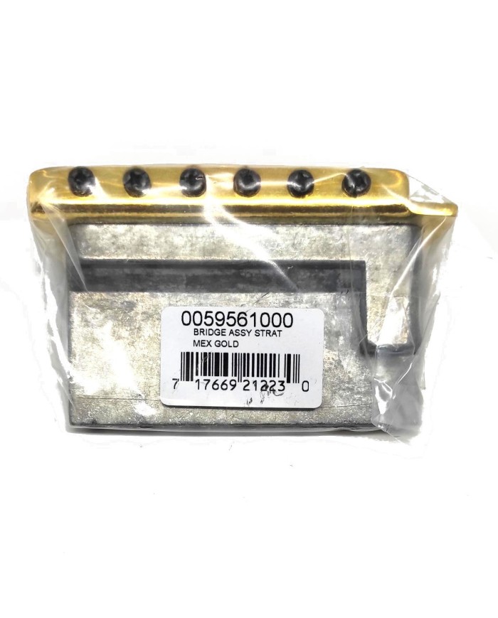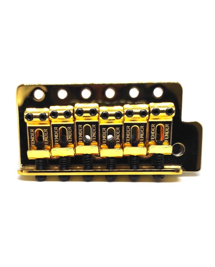 Gold-plated vintage-style bridge assembly for use with most Standard series Stratocaster models manufactured before 2006.