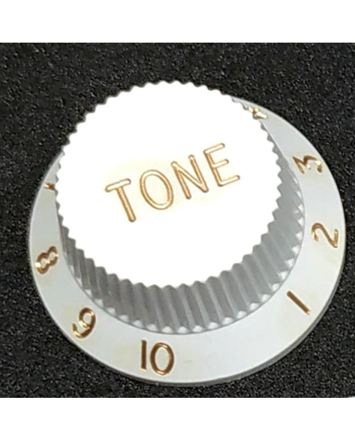 1 bouton de controle Tone Blanc UFO pour Stratocaster, lettrage doré,Metric size Knobs 18 splines