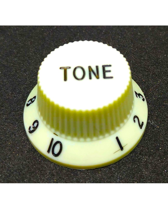 3 Boutons Creme Stratocaster Vintage UFO, lettrage noir, Métrique 18 splines.