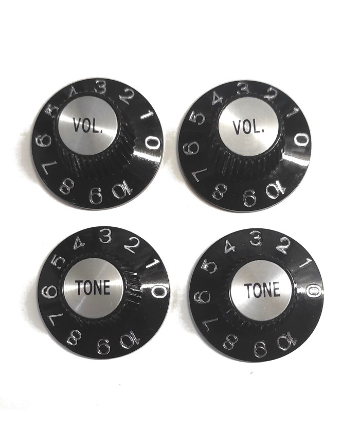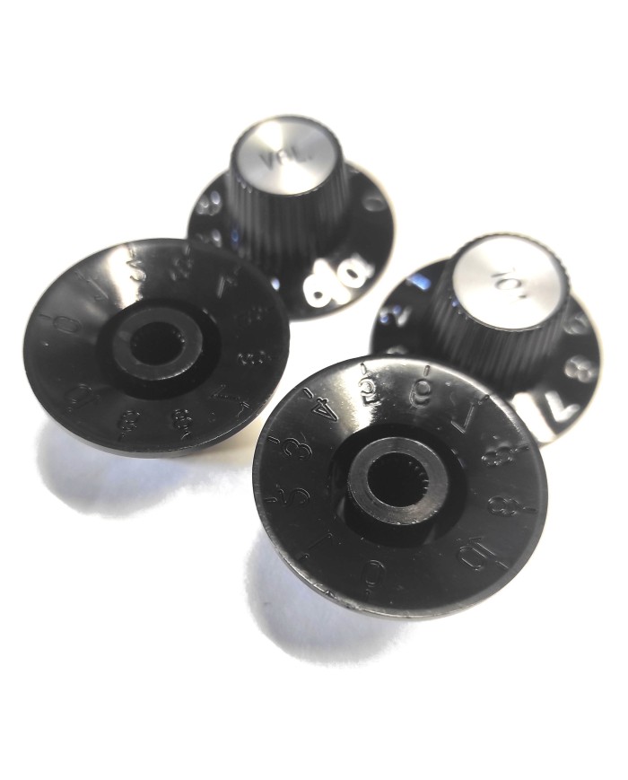 4 Boutons Tone + Volume Chapeau de sorcière Silver reflector pour potentiomètre split shaft US style CTS