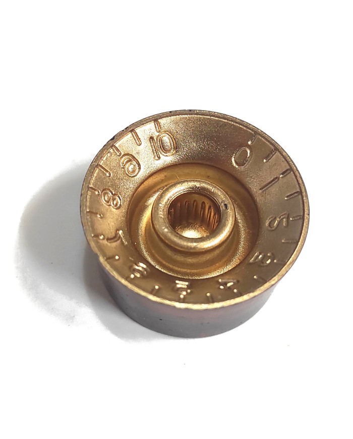 2 Boutons Speed Knobs Ambre pour potentiomètres metric 18 canelures, pour epiphone et toutes les guitraes avec potentiomètre asiatique.