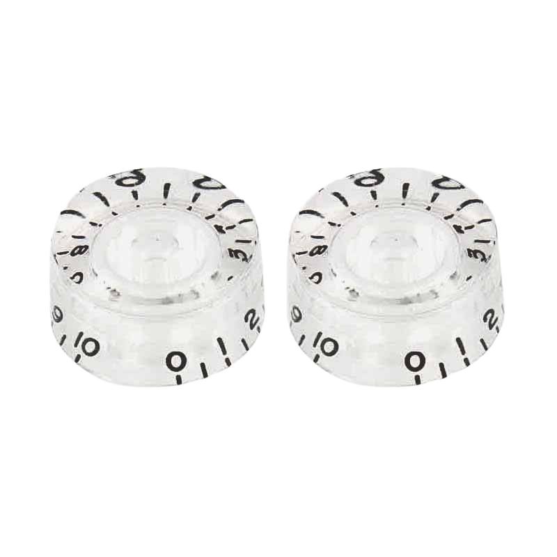2x BOUTONS PLEXI fond NOIR Vintage style Numéros Graves, format Metrique / Non US (Asie, Europe : 18 cannelures / coarse splines) pour potentiomètres axes fendus. Ne convient pas aux CTS et autres potentiomètres "inch size" = 24 fines cannelures.