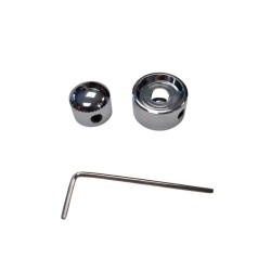 Bouton en métal double pour double potentiomètre. Finition Chrome.