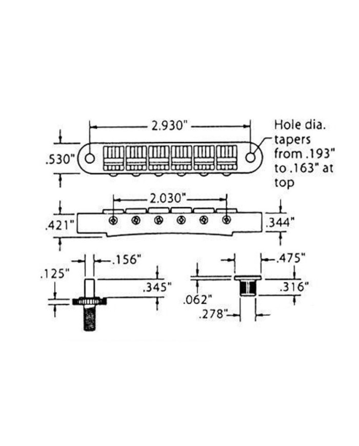 TonePros TP6R-N Chevalet Nashville Roller saddle mesures imperiales Nickel