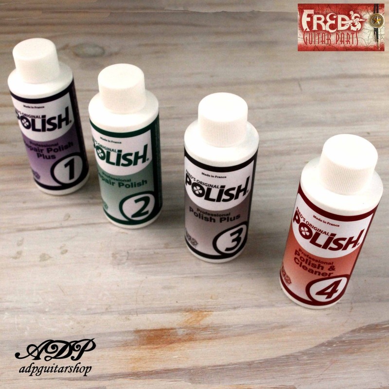 FRED'S POLISH Licence CLOVER Lot de 4 flacons de 60ml pour ENTRETIEN: Guitare, Basse tous vernis
