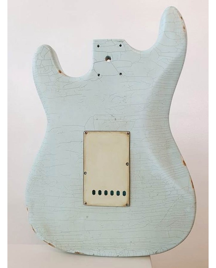 Le craquelage apparaît généralement quelques jours après l'application. Il est recommandé de l'utiliser comme couche de finition. Après avoir appliqué une sous-couche, un vernis coloré et un top coat transparent, vous pouvez appliquer deux à trois fines couches de Relic Gloss pour faciliter le processus de vieillissement. Si le craquelage ne se forme pas ou si vous souhaitez un craquelage plus prononcé, vous pouvez l'accentuer ou l'accélérer en jouant sur les variations de température de la surface de la guitare. Le vernis peut ensuite être poncé et poli. Relic Gloss est un excellent choix si vous souhaitez donner à votre guitare une touche vintage accentuée par le passage du temps sur le bois.