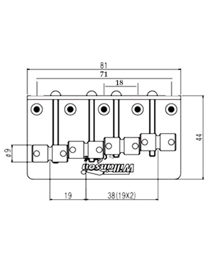 Cordier de Basse Wilkinson chrome, 4 pontets barrel en laiton, espacement 19mm
