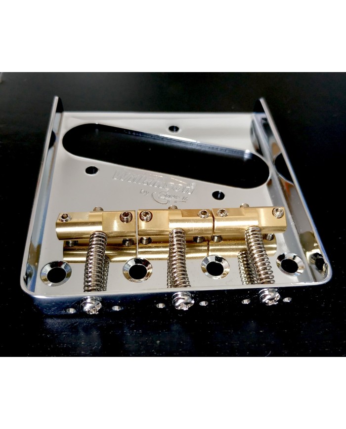 Cordier Telecaster de Wilkinson en chrome, avec 3 pontets compenses en laiton et un espacement égaleme à 10,8mm.